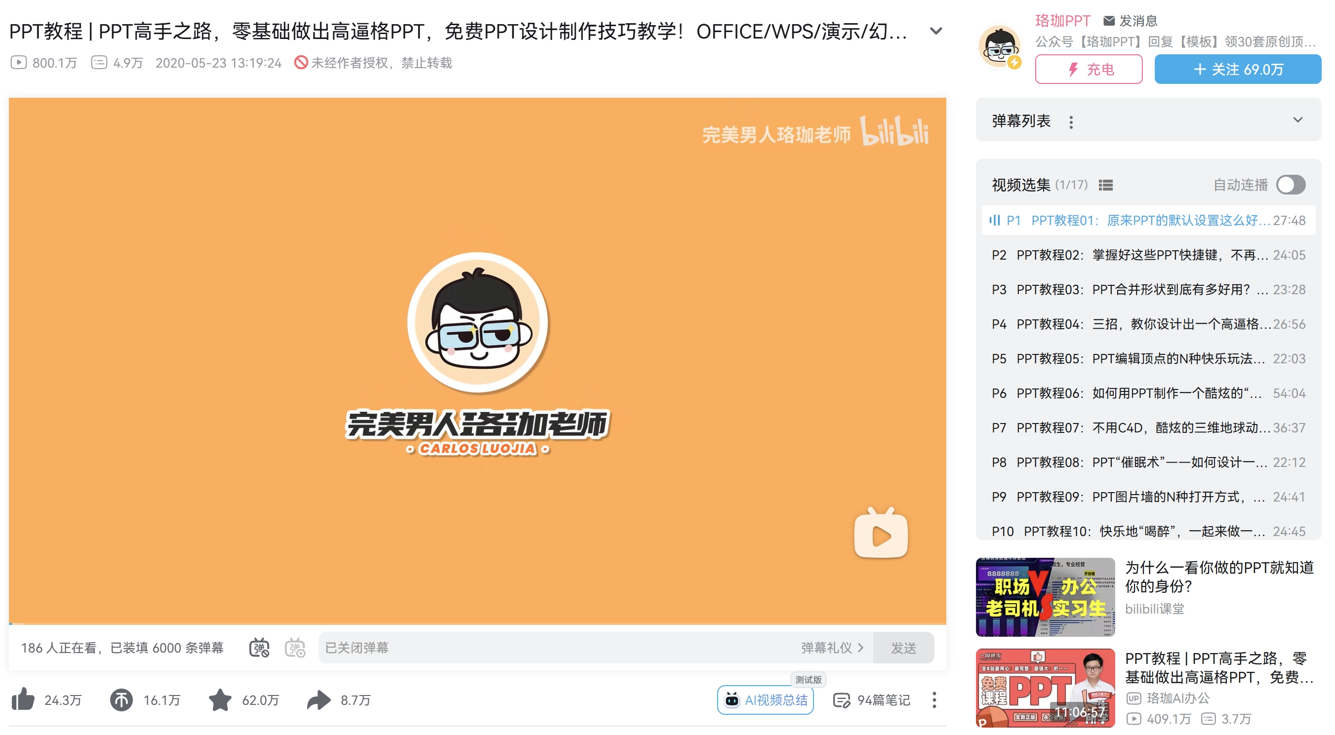 B站PPT课程 珞珈PPT PPT高手之路,零基础做出高逼格PPT
