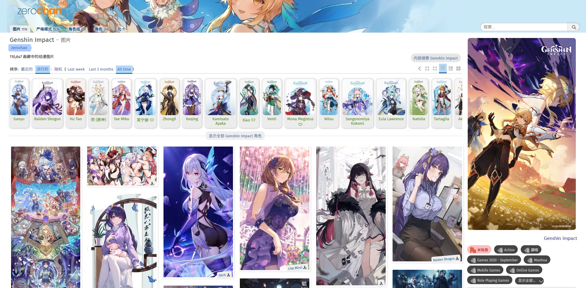 Zerochan_图片Tag下载,界面看起来最整洁,体验也很好。